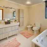 Villa Rioja With Pool & Mountain And Sea View, Only Familys includes a bathroom with a spa bathtub, a hot tub, and a shower. There are hair dryers, toiletries, and bath sheets for guests' comfort.